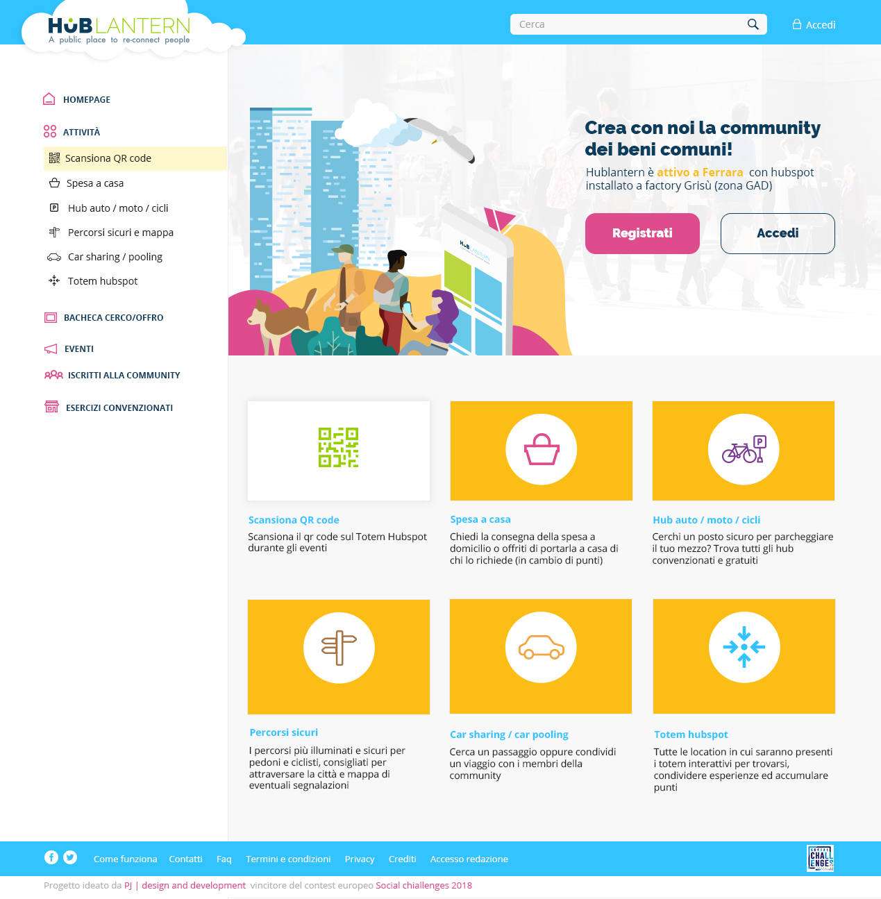 Il progetto HUB Lantern risponde ad una sfida del programma EU Social Challenges lanciata dal Consorzio Factory Grisù e realizzata da una rete di imprese: Plastic Jumpers, Città della Cultura / Cultura della Città, Uhopper. Con il supporto di: ASTER, Seltzlab, ITCare.